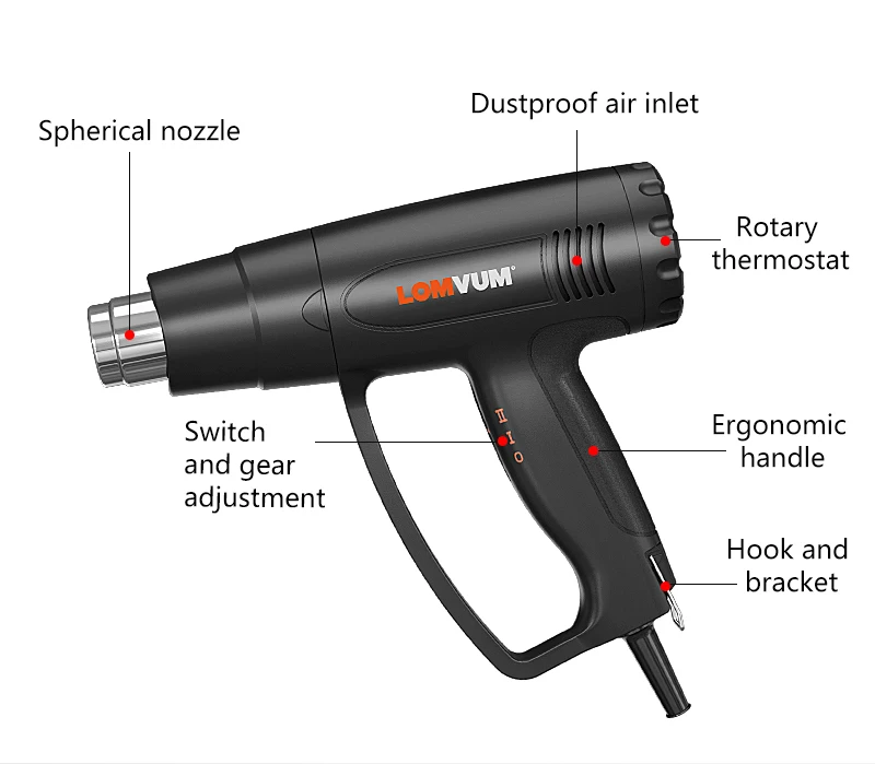 LOMVUM 2500w цифровой тепловой пистолет 700℃ Высокой ТемператураЭлектронный тепловой пистолет горячего воздуха 220 В переменного тока Переменная температура 100-700℃