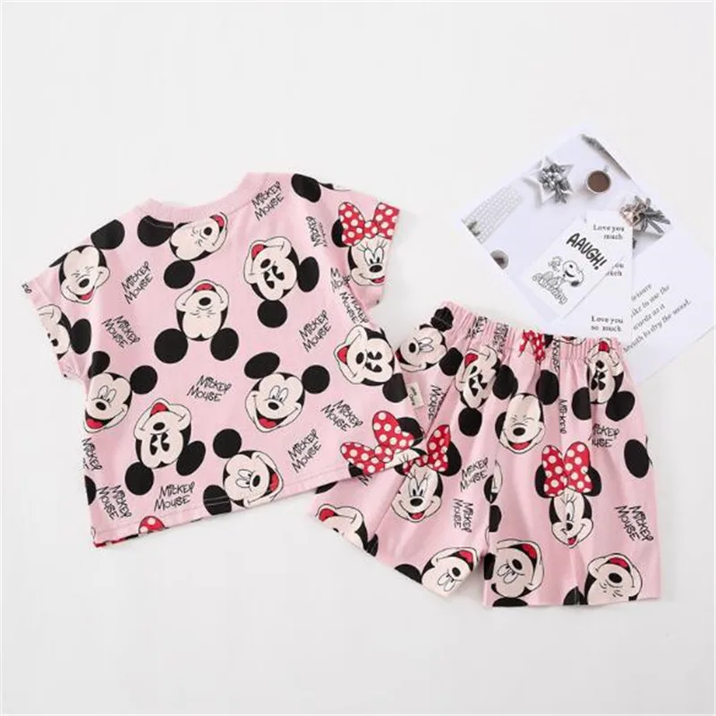 Летний комплект для малышей Одежда для девочек, хлопковый наряд с Микки-Маусом, Детская футболка с коротким рукавом, костюм из 2 предметов, Детский костюм для маленьких девочек JE