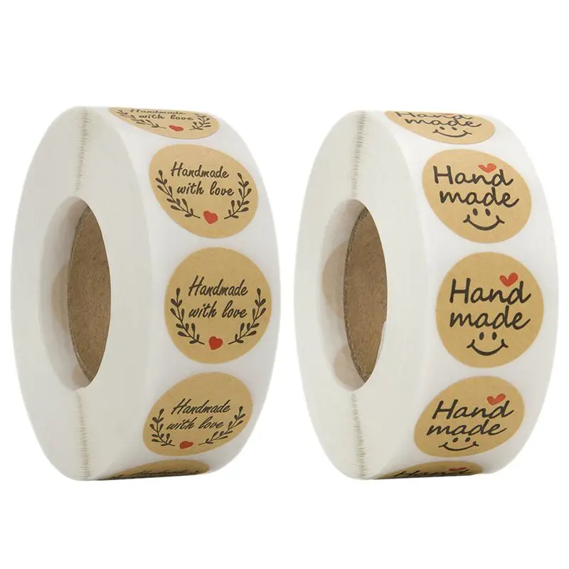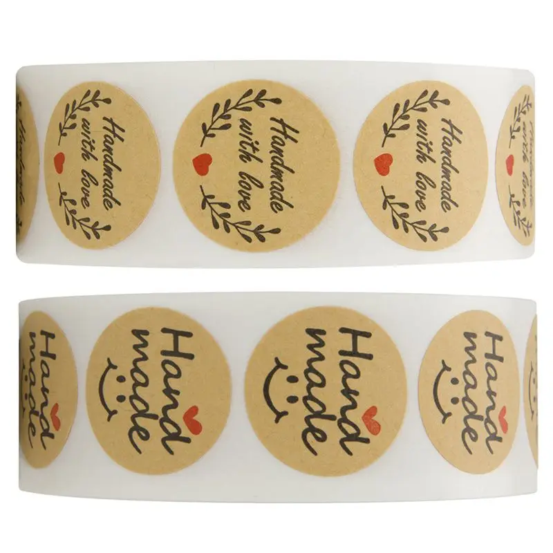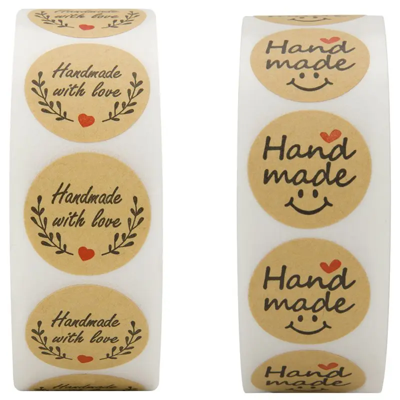 1000 шт. наклейка: 500 шт. "ручная работа с любовью" и 500 шт. "спасибо"