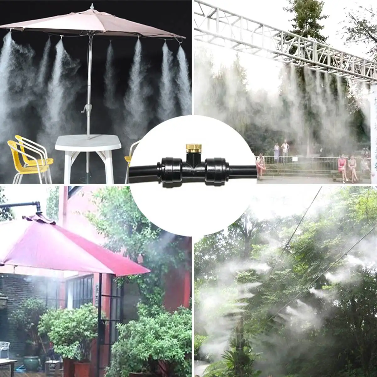 -Тройники с насадками для запотевания: Скользящий замок быстро нажимается, подходит для 1/4 ''систем запотевания, отлично подходит для водяного охлаждения, он может подавать очень мелкий туман, чтобы значительно охладить воздух в самую жаркую летнюю погоду.