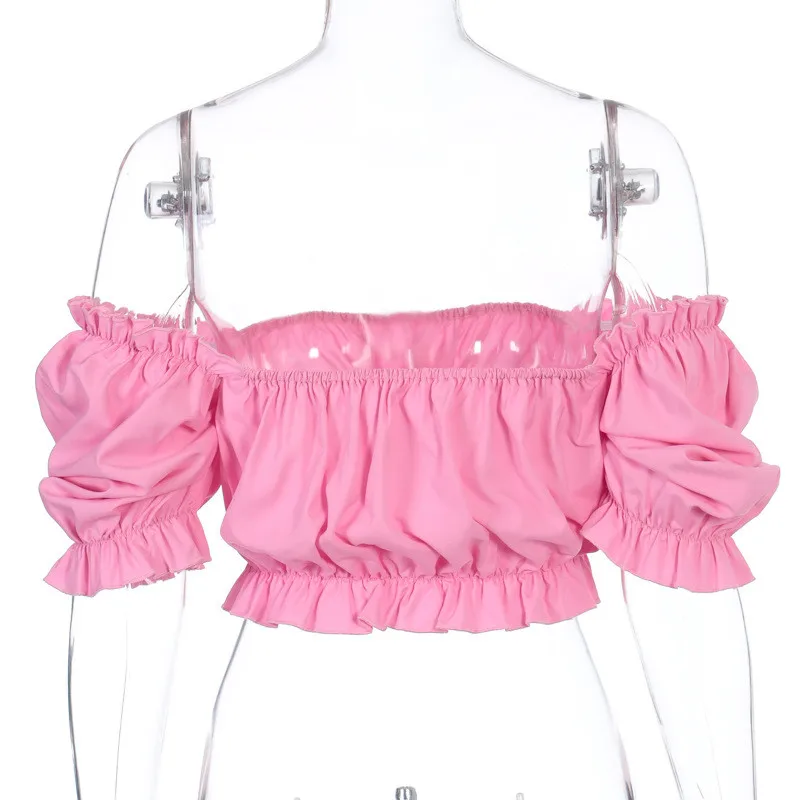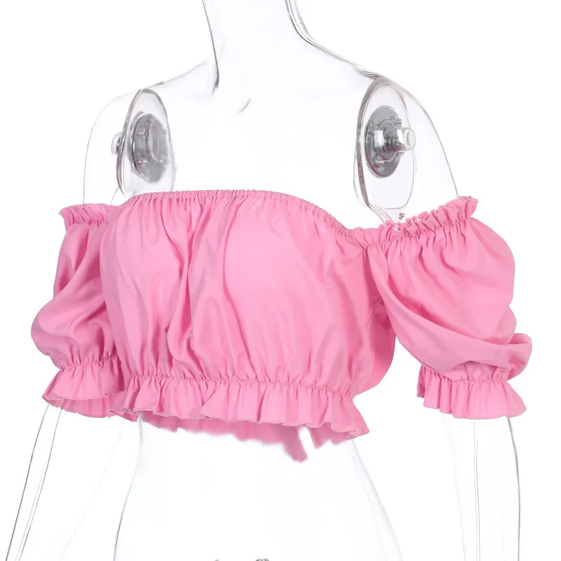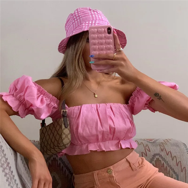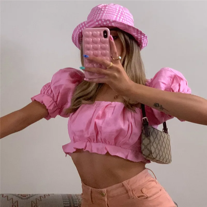 Новинка 2020, женский укороченный топ, новинка, чистый цвет, летняя мода, короткие рукава-буффы, повседневные топы, одежда, женские футболки с оборками, Femme Hot!