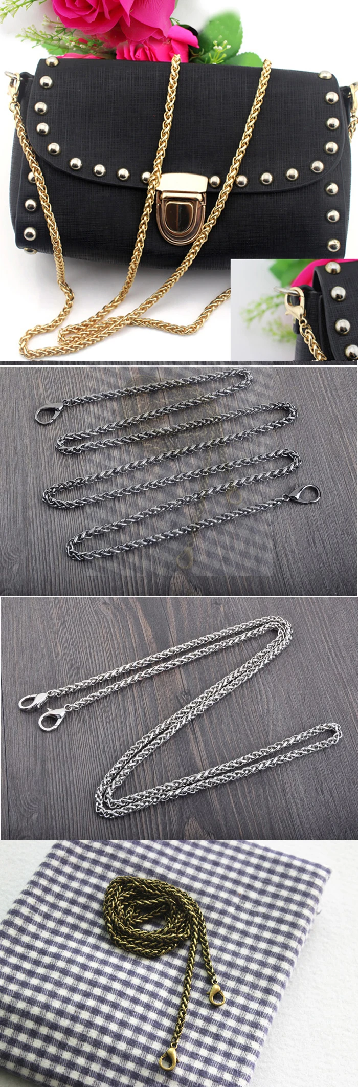1. Цепочки тонкие, подходят только для кошельков, вечерних сумок с застежкой, мини-и небольших сумочек.