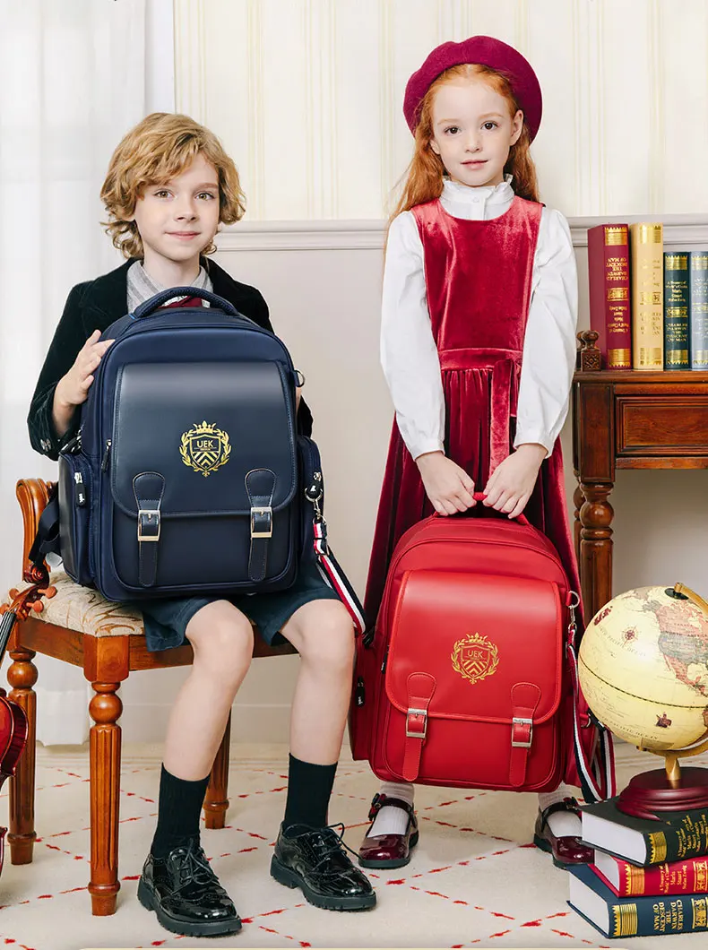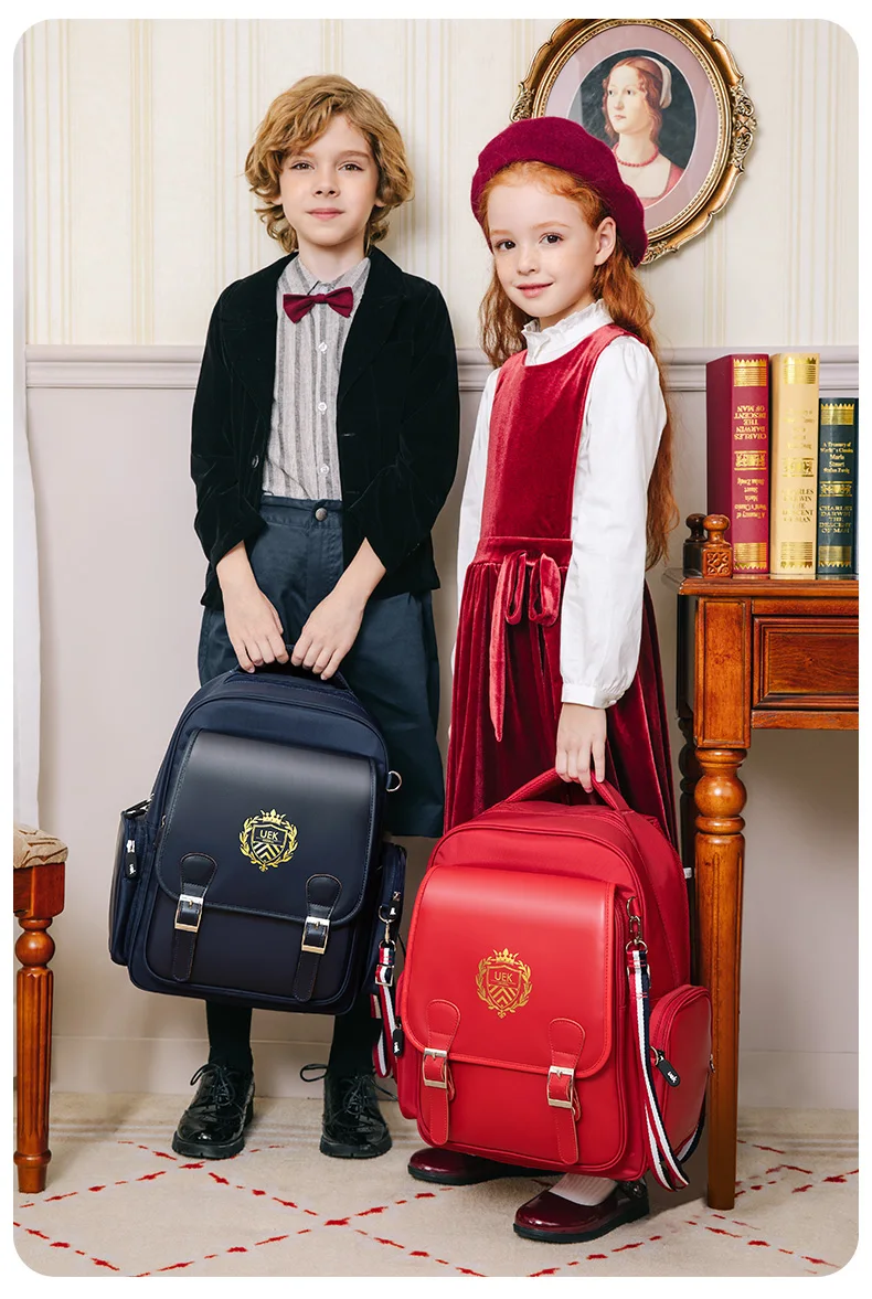Uek студенческий Детский рюкзак в английском стиле, большие школьные ранцы для мальчиков и девочек, рюкзак красного и синего цвета, водонепроницаемые Рюкзаки, Детская сумка для книг