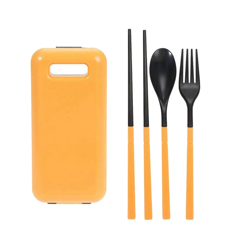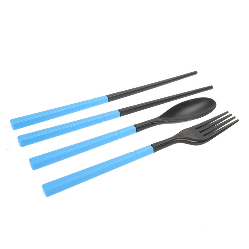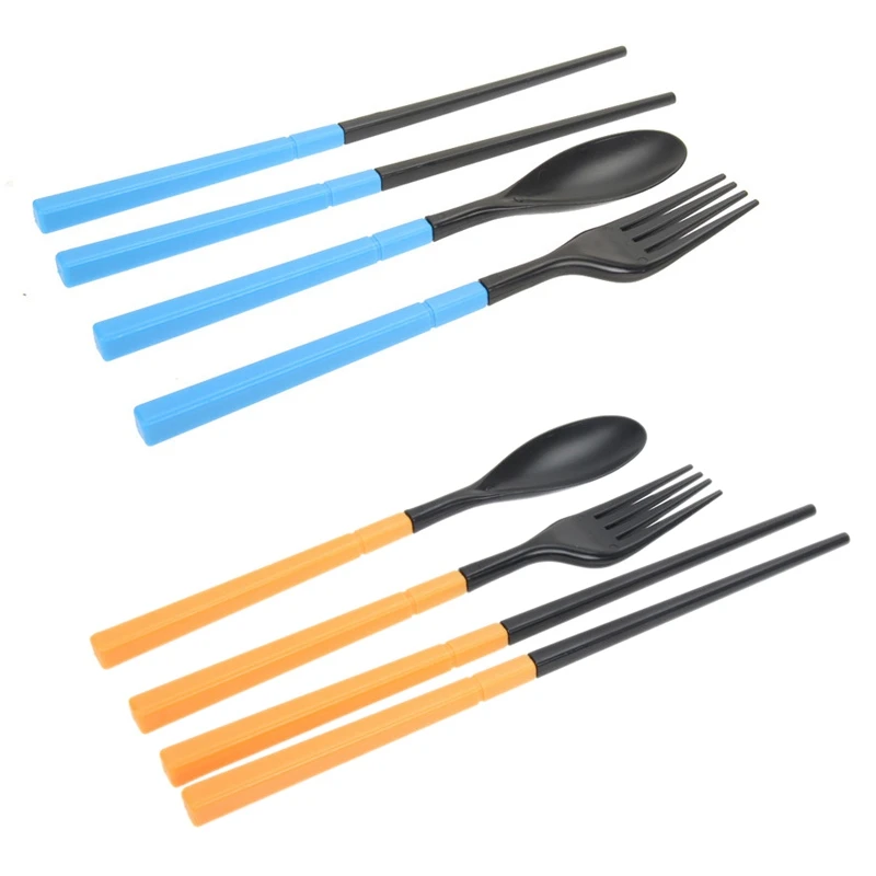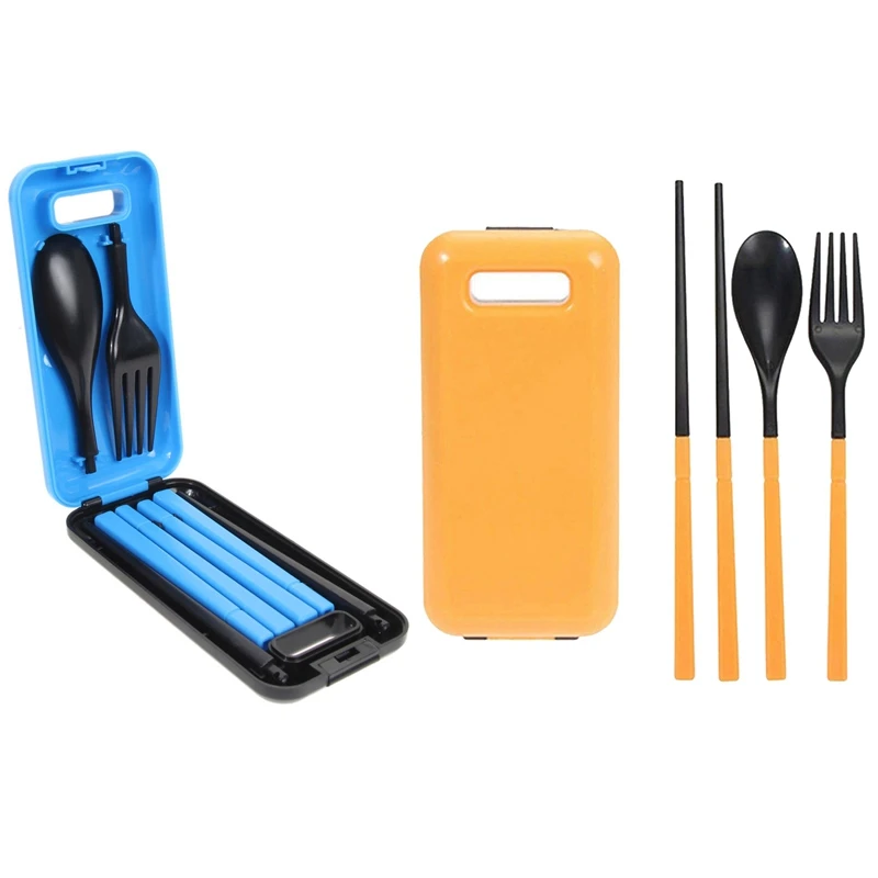 Хит продаж, 2 комплекта, для отдыха на природе, 3 в 1, складная посуда, экологичный Abs материал, набор столовых приборов, синий и желтый