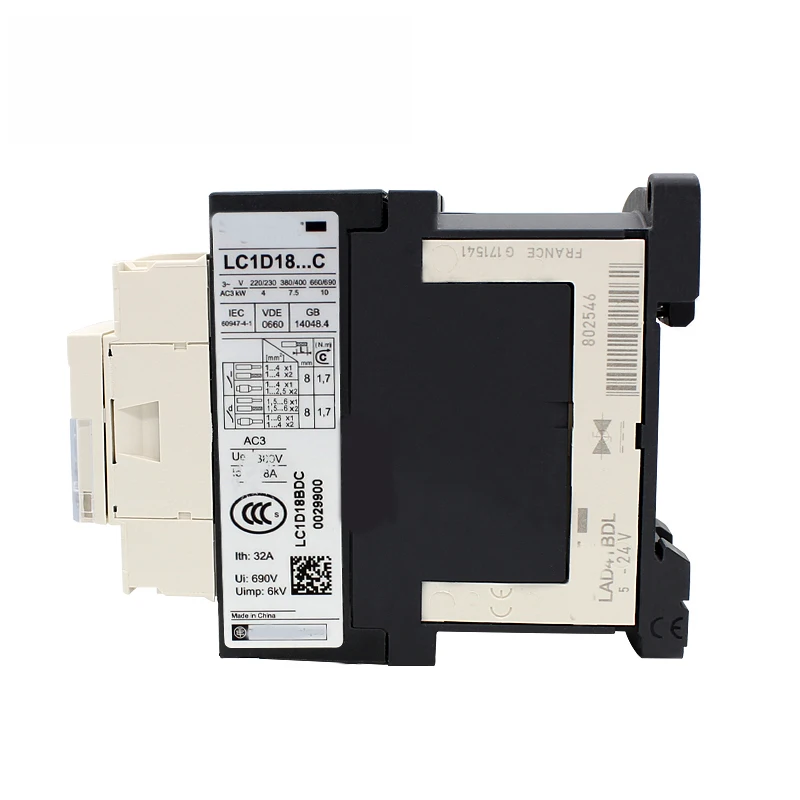 Основная информация: продукция TeSys D наименования товара Тип продукта контакторы LC1D наименования товара Область применения контактора для включения и выключения двигателя в клетке для белки Применяется для нагрузки переменного тока с коэффициентом мощности больше или равно 0,95 Категории использования: AC-3, AC-1, AC-4 Полюс: 3 P Состав контакта силового полюса 3 NO Номинальный рабочий ток [Ie]32A 60 °C] Ie]32A 60 °C = 440 на... Применимый возврат мощности Дорога 18A 60 °C)<= цепь питания 440 вкл. Напряжение цепи управления 24 В постоянного тока Вспомогательный контакт типа 1 NO 1NC