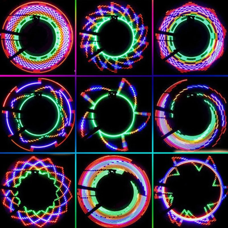 Эргономичный дизайн и удобство и энергия-наша подсветка для велосипедного колеса контролируется скоростью езды, как показывают фотографии, чем быстрее вы ездите, тем более полным и красивым рисунком!