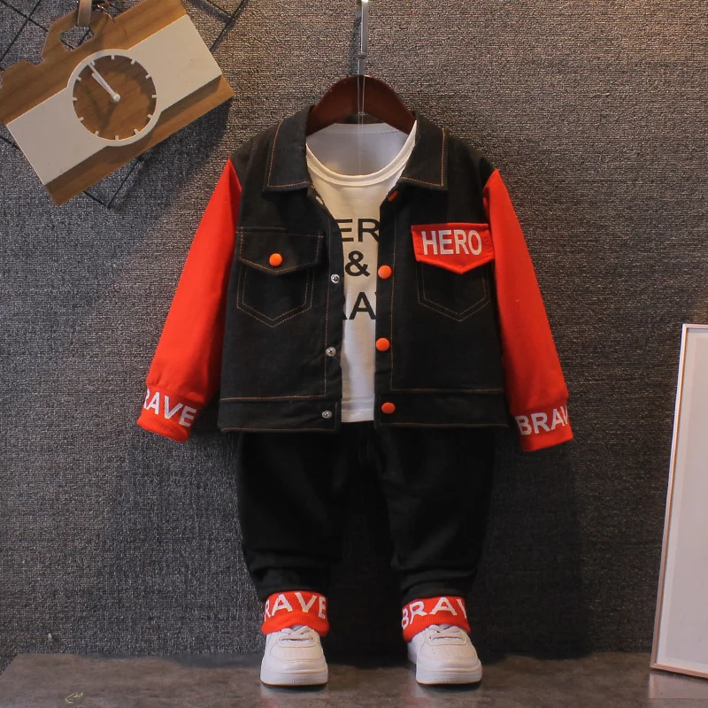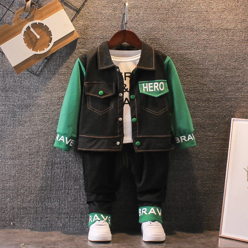Новинка, хлопковая одежда, детская демисезонная рубашка для маленьких мальчиков, куртка и штаны, 3 шт./компл., наряд для младенцев, детский Модный повседневный спортивный костюм для малышей на От 0 до 4 лет