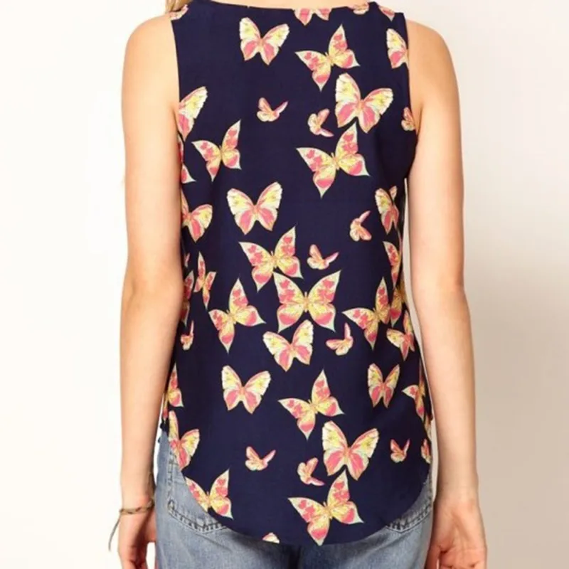 2021 Летняя женская майка с принтом бабочки, милый топ, жилет, шифоновая блузка без рукавов