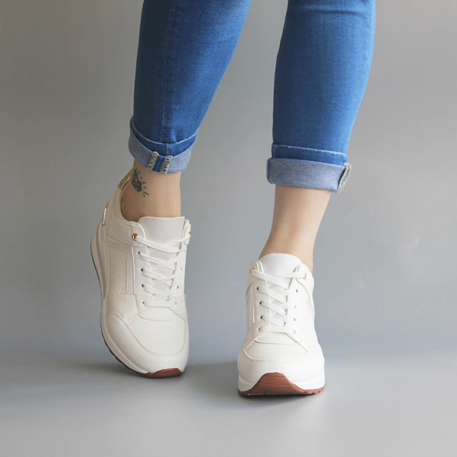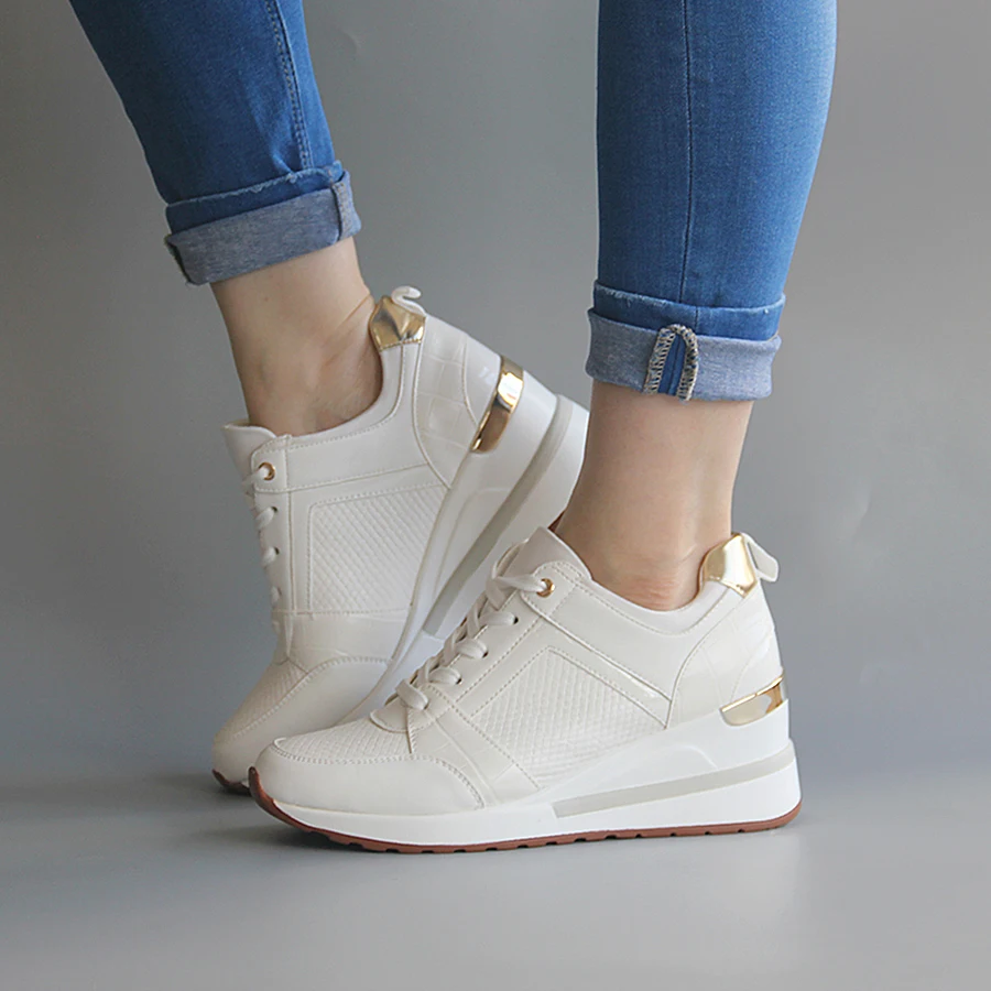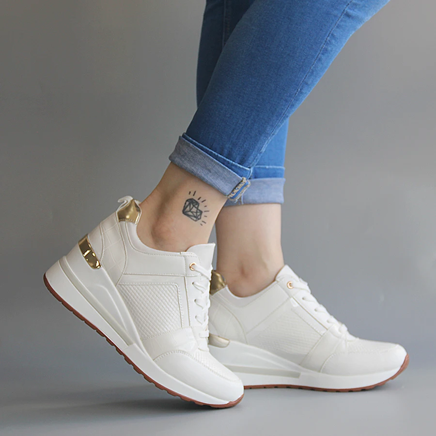 ★Белые кроссовки на танкетке; Повседневная женская обувь на танкетке