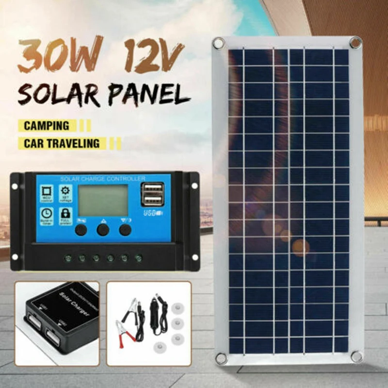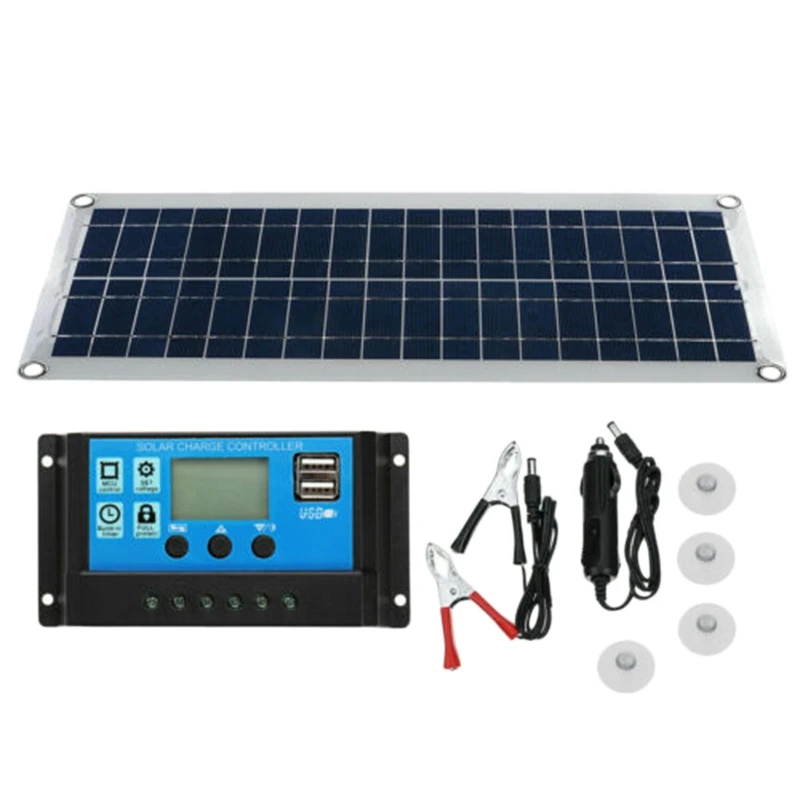30 Вт двойной USB гибкий набор солнечных панелей + 20A контроллер + зажим для наружного автомобильного зарядного устройства